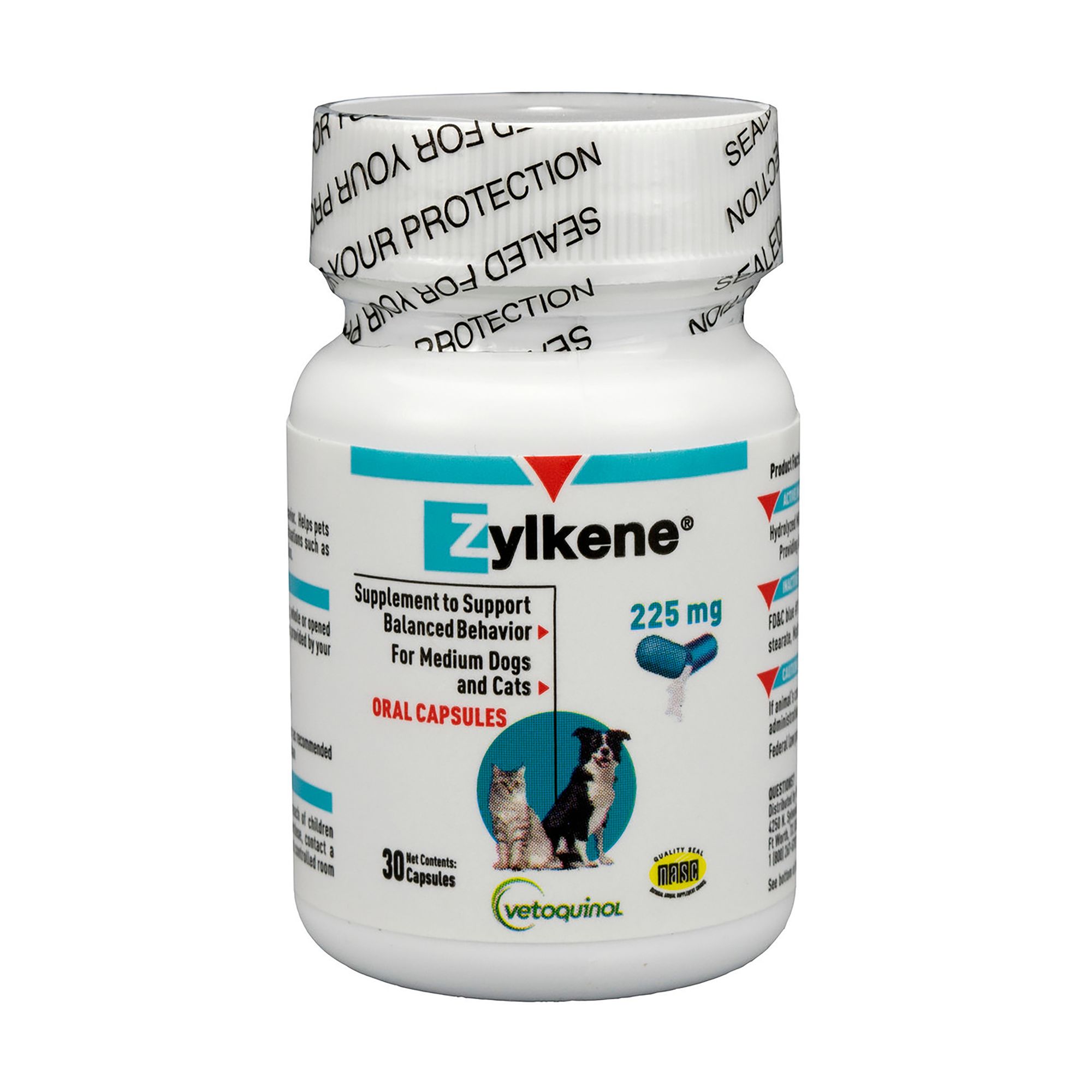 Vetoquinol Zylkene 225-mg Capsules Calming Supplement for Medium Dogs & Cats 30 CT