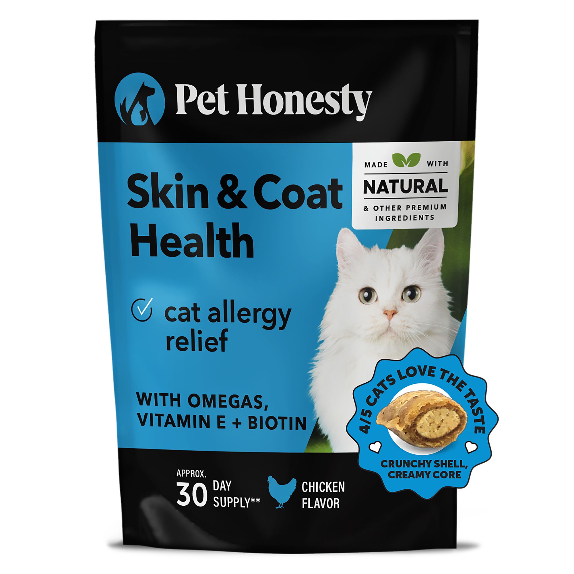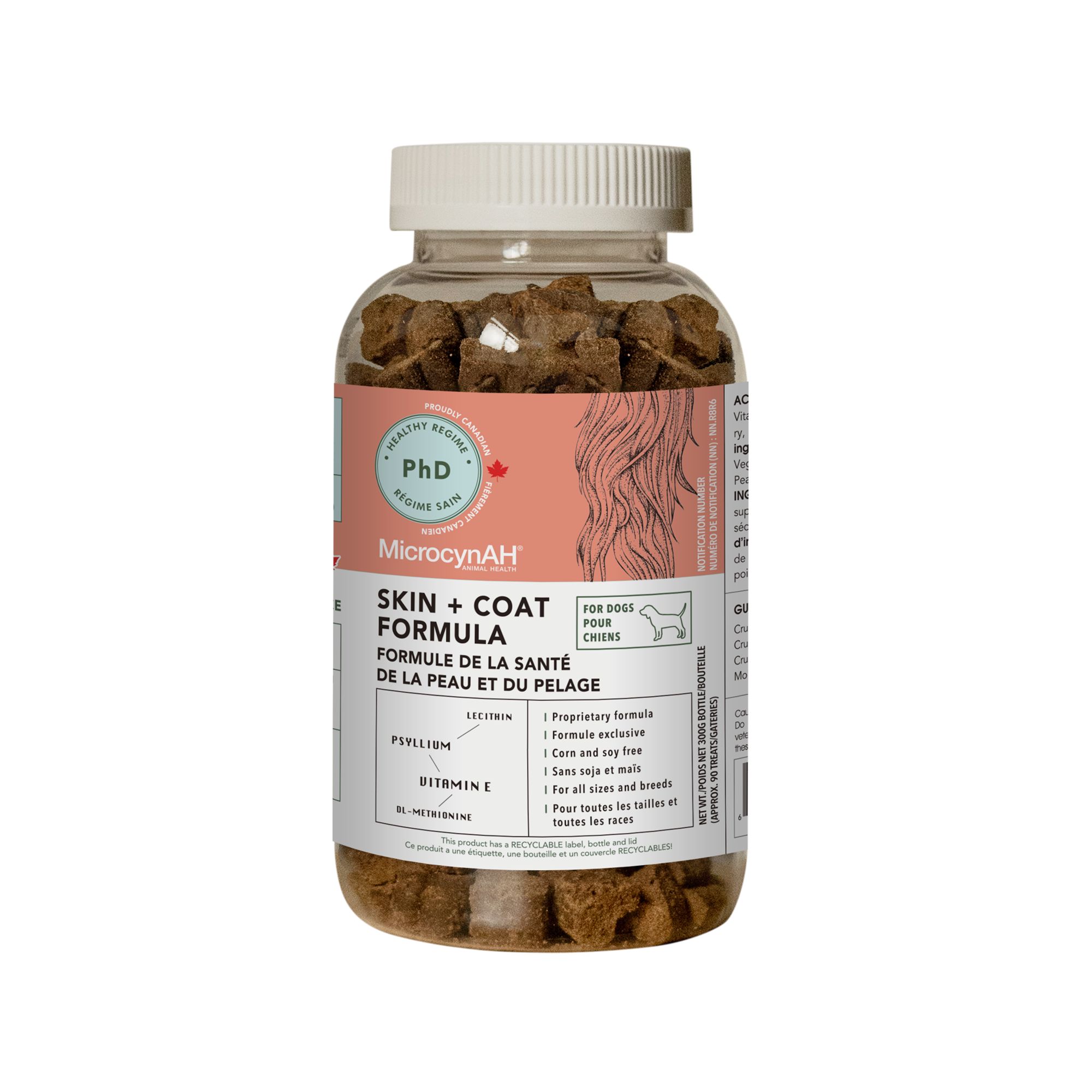 Omega fatty acids and biotin supplements for a healthy, shiny coat and itch-free skin.